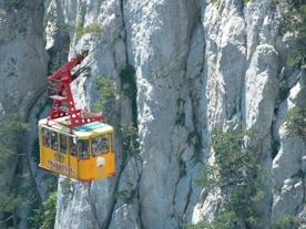 Канатная дорога Мисхор - Ай-Петри действует круглый год. Ее длина - 2980 м. Пассажирская кабина проходит путь за 15 минут. Она весит 1,8 тонны и вмещает 40 человек.