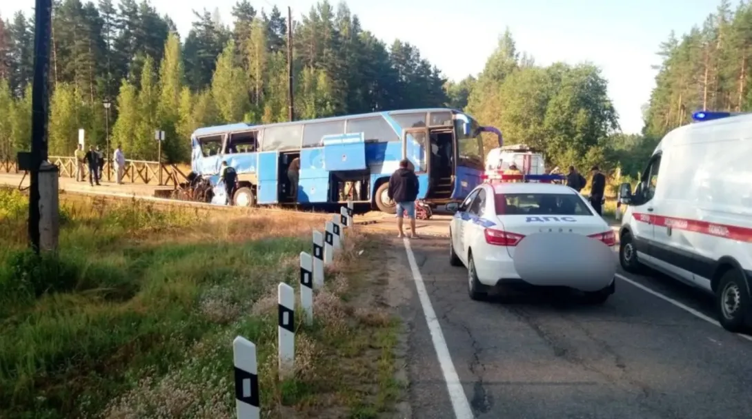 Один человек погиб, не менее 12 пострадали, когда грузовой поезд снёс автобус с туристами в Ленинградской области, сообщает РИА Новости.