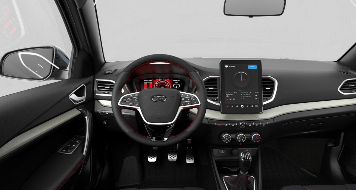 Модель оборудована современной мультимединой системой: 10-дюймовый сенсорный экран Lada EnjoY Vision Pro с интеграцией сервисов «Яндекса» (Карты, Музыка, голосовой ассистент «Алиса»).