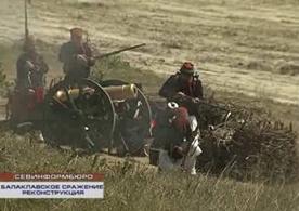 На Балаклавском поле – реконструкторы из Украины и России, сто пятьдесят человек. Для кавалерии лошадей собирали со всего Крыма. Эпизод начался с солдатской перестрелки. Затем на поле выехали уральские казаки и русские гусары, одетые для маскировки в солдатские шинели и с закрытыми киверами.