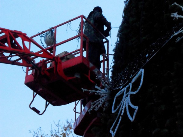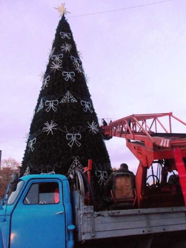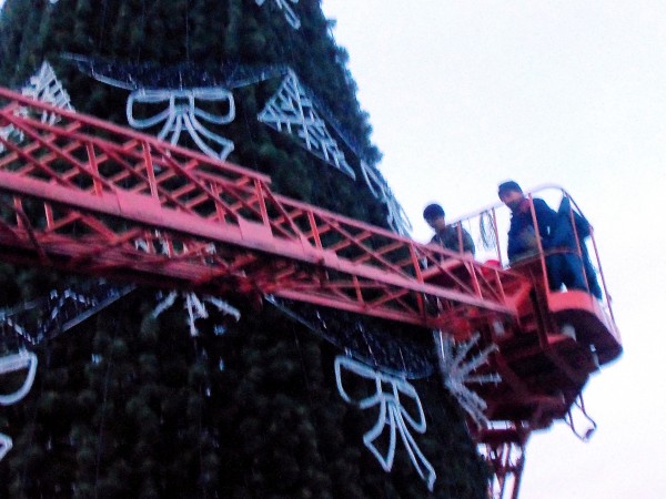 Каждый день хожу мимо елки -- на монтаже как раз профессионалы работают.