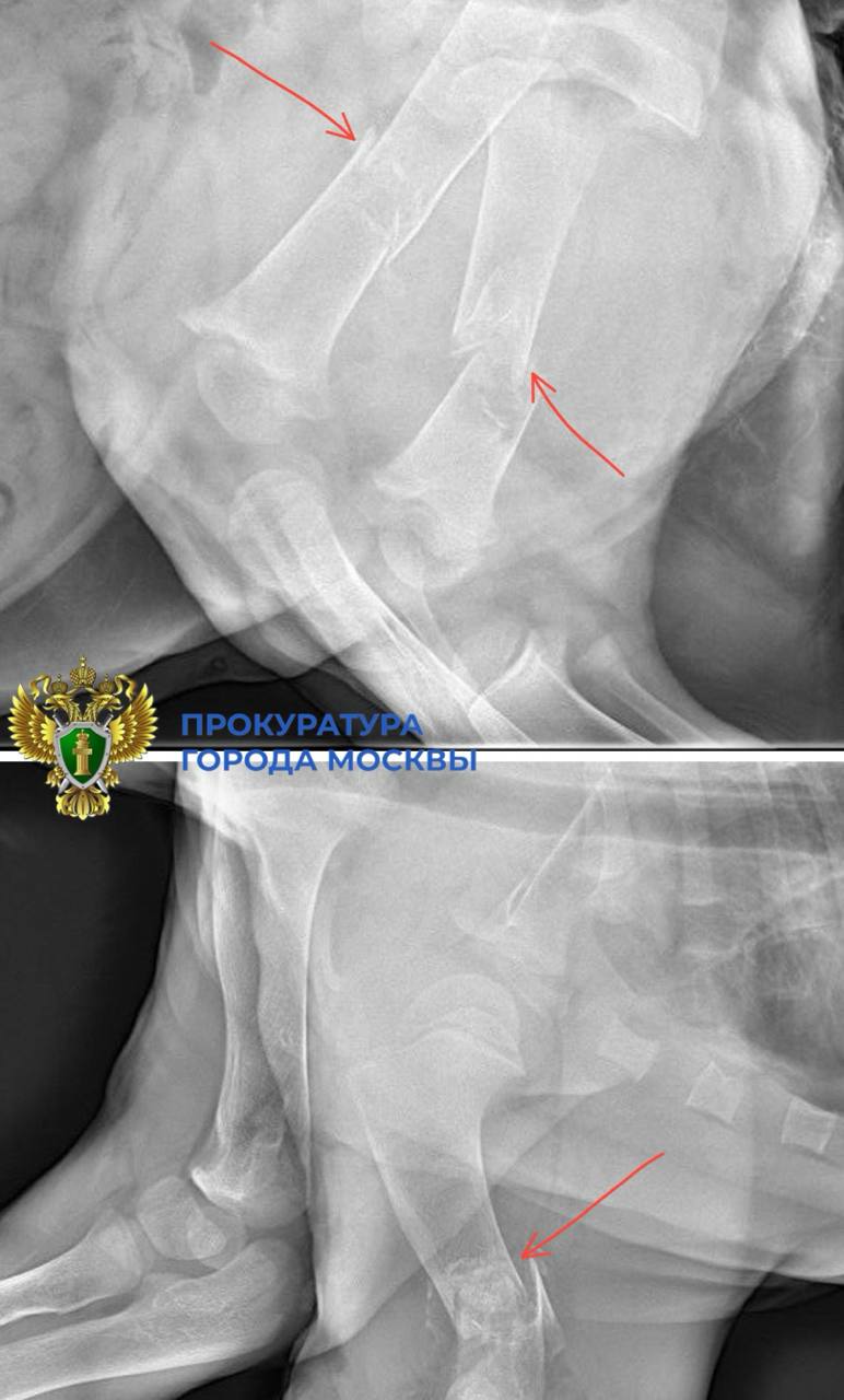 И опубликовали рентгеновский снимок, показав на нём места переломов трёх лап.
