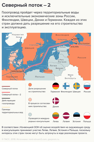Проект "Северный поток - 2" предполагает строительство двух ниток газопровода общей мощностью 55 млрд куб. м газа в год от побережья России через Балтийское море до Германии. Как ожидается, газопровод будет запущен до конца 2019 года. 13 февраля совет ЕС и Европарламент предварительно одобрили ужесточение Газовой директивы Евросоюза на основании значительно доработанного и смягченного проекта поправок, разработанного Германией и Францией.