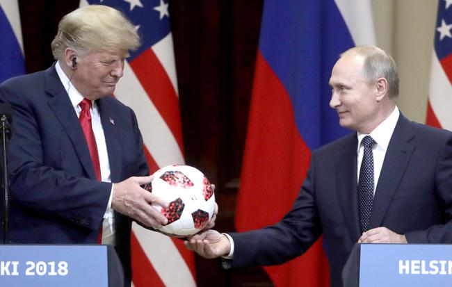 Президент России Владимир Путин в ходе пресс-конференции по итогам саммита в Хельсинки 16 июля подарил своему коллеге Дональду Трампу официальный мяч чемпионата мира по футболу 2018 года. Подарок Путина вызвал волну критики со стороны политиков в США. Так, сенатор Линдси Грэм (республиканец от штата Южная Каролина) рекомендовал президенту США проверить мяч на наличие в нем прослушивающих устройств.