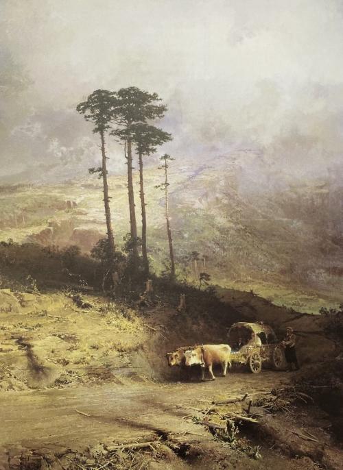 И не зря. Вместо привычных для зрителя того времени видов Крыма с брызгами морской воды и буйной зеленью, картина рассказывает о ненадёжных тропах, петляющих среди гор. Покачиваясь, по узким дорожкам движется татарская повозка, запряжённая быками.