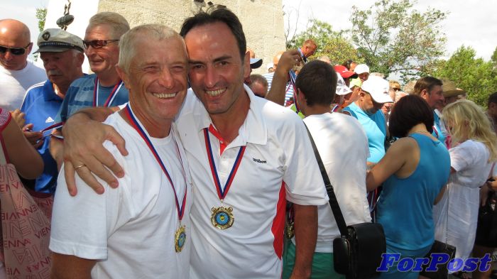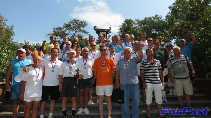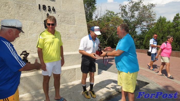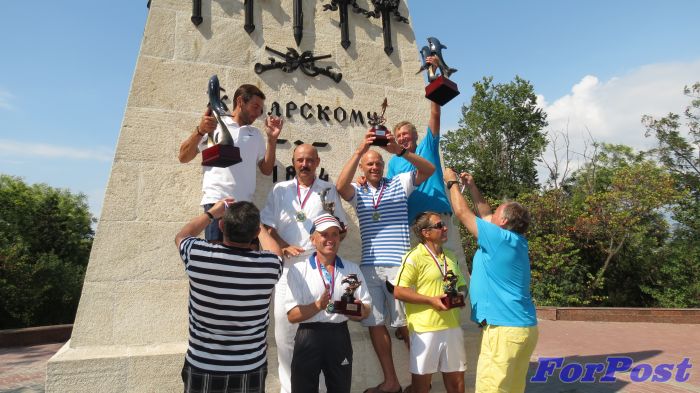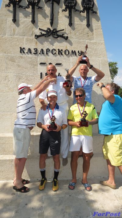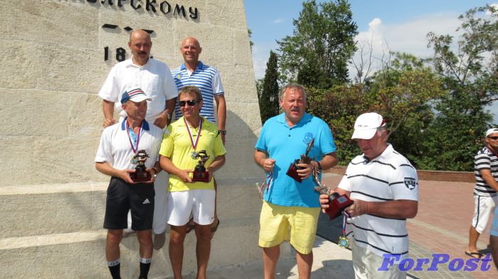Итак, победителями турнира стали сочинцы - заслуженный строитель России Федор Михайлович и 35-летний тренер по теннису Шота Джамбурия, который мужественно сражался на корте, несмотря на травму локтя. Второе место завоевали севастополец начальник Центра морской и физической подготовки Черноморского флота РФ капитан 1 ранга запаса Олег Череватый и в прошлом его подчиненный по Качинской авиационной базе черноморец, а ныне житель Донецка Михаил Павлюков. Тройку призеров замкнули москвич старший лейтенант запаса и генерал госслужбы Алексей Акулов и президент федерации тенниса Мордовии, ветеран теннисного турнира «Большая Бескозырка» Николай Калиниченко. Награждение проходило под звуки военного оркестра Черноморского флота. Сделали традиционное фото на память.
