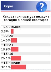 В самый пик морозов, 1 февраля, мы решили опросить пользователей «Форпоста» на эту тему. Вопрос был сформулирован следующим образом: «Какова температура воздуха сегодня в вашей квартире?».