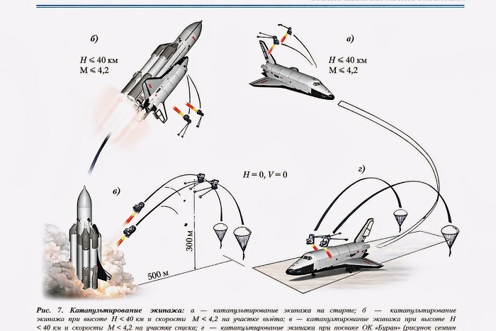 Рассматривалось и катапультирование экипажа. Здесь соединились авиационный опыт и космические требования.