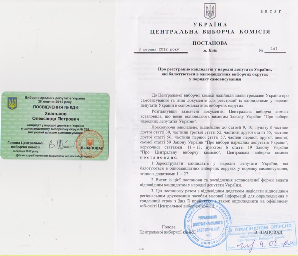 А.Хвальков выдвинул свою кандидатуру в порядке самовыдвижения. Кандидат уже получил удостоверение за №6