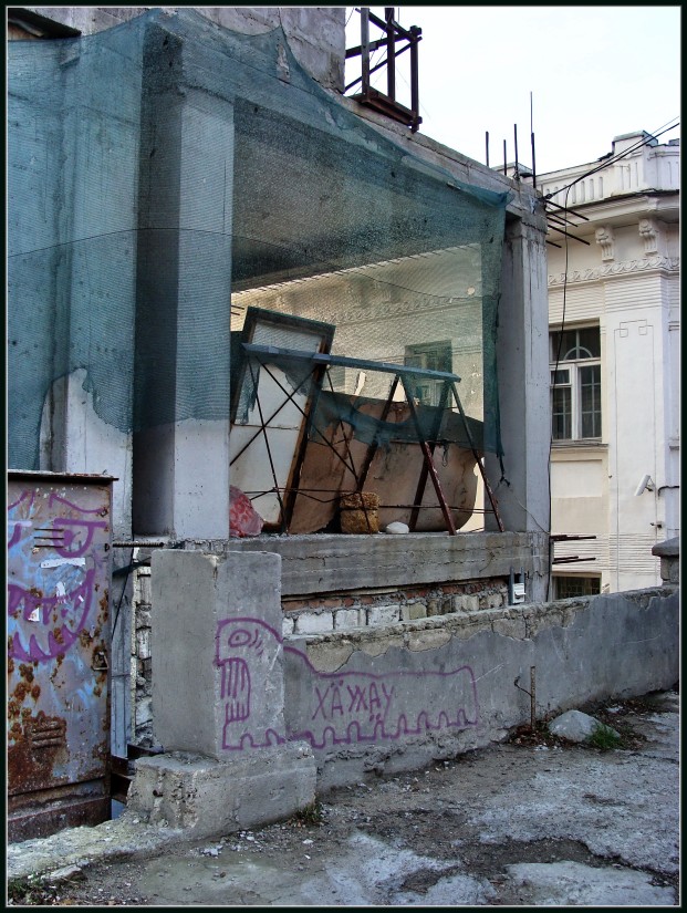 to gevic (Sevastopol) По всему , отцы-основатели «красивого Диалога с будущим» мечтали о висящем в небе переходе через улицу - сразу на верхние марши у Союзпечати. То есть, рядом с запроектированным галерейным переходом в верхнее (следующее здание-новостройку). Не сама дурацкая идея, если бы не вообще хамская метода застройки города. А ведь и правда, как было бы здОрово! Неужели нам уже так и не увидеть город красивым и комфортным?