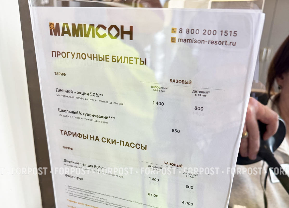 Еще одно отличие, которым сейчас манит «Мамисон» — это цены. Так, с 26 января по 8 февраля на курорте действовали скидки до 50%. И это не маркетинговый ход — цены действительно упали вдвое. Ски-пасс на целый день стоил 1400 рублей.
