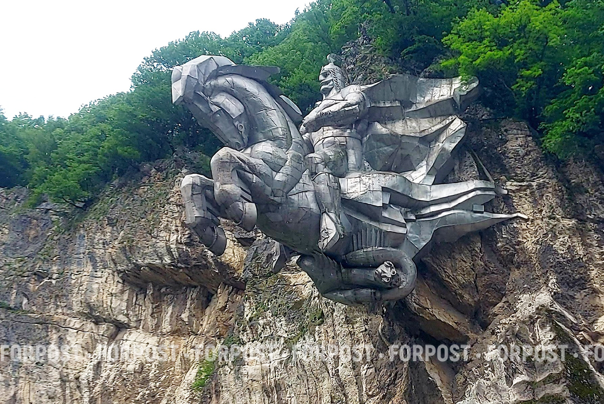 Почти сразу при въезде в ущелье вас встречает гигантский памятник Уастырджи — покровителю путников и воинов в осетинской мифологии. 28-тонный всадник в традиционном одеянии словно вылетает из скалы прямо над дорогой. Это один из крупнейших конных памятников в мире. По традиции проезжающие оставляют монетки — чтобы дорога была лёгкой.
