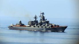 Вспомогательное и спасательное суда Черноморского флота успешно преодолели Черное море, Проливную зону и вышли в Средиземное море, где находится и флагман Черноморского флота гвардейский ракетный крейсер «Москва» под командованием гвардии капитана 1 ранга Сергея Тронева.