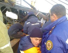 В результате облома корабельной стрелы (по предварительным причинам - из-за обморожения барабана), краном был зажат рабочий. Учитывая огромную угрозу его здоровью, пострадавшего быстро вытащили из-под корабельного крана сотрудники аварийно-спасательного отряда специального назначения МЧС.