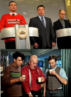 Смешно. Так же как и смешны лидеры нынешней оппозиции, метко прозванные народом «Трус, Балбес и Бывалый» в честь знаменитой гайдаевской троицы. Рубленные заученные фразы, обвинения в адрес России, отсутствие стратегии и осторожность в действиях. Вряд ли подобные личности способны не то что повести за собой народ, а даже просто держать ситуацию под контролем.