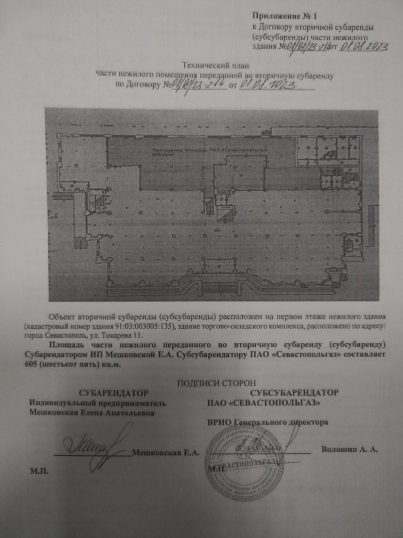 Так, ForPost смог ознакомиться с копией договора от 1 августа 2023 года вторичной субаренды первого этажа ТЦ «Авангард», где сторонами выступают врио гендиректора ПАО «Севастопольгаз» А.А. Волошин и сдавшая ему помещение индивидуальный предприниматель Елена Мешковская. Индивидуальный предприниматель Мешковская — свояченица (сестра жены) Эдуарда Третьяка.