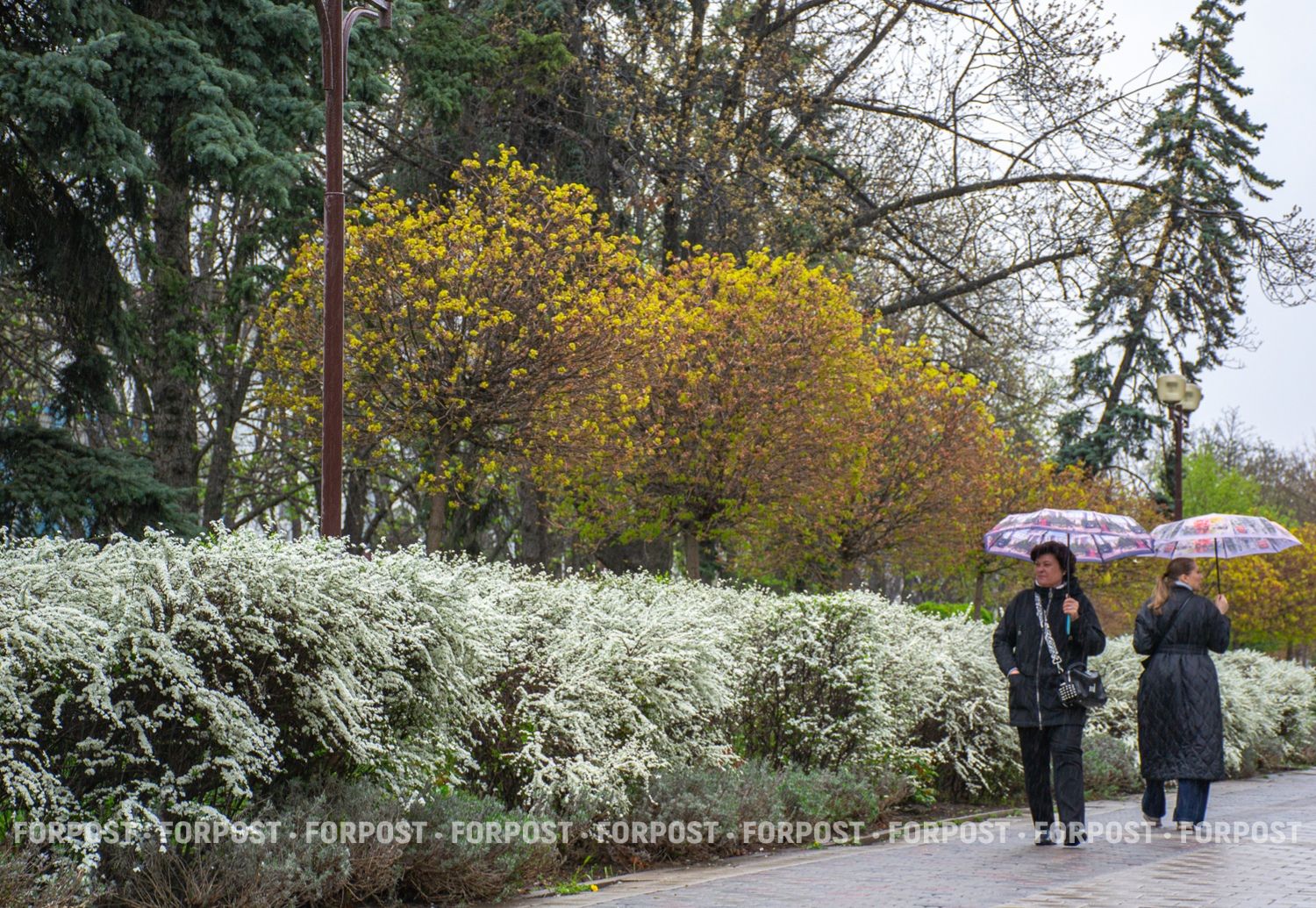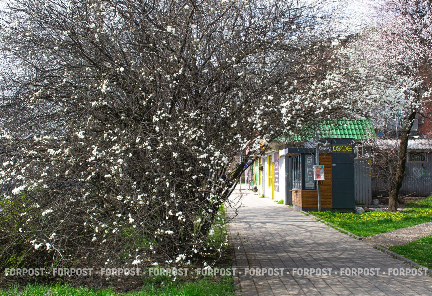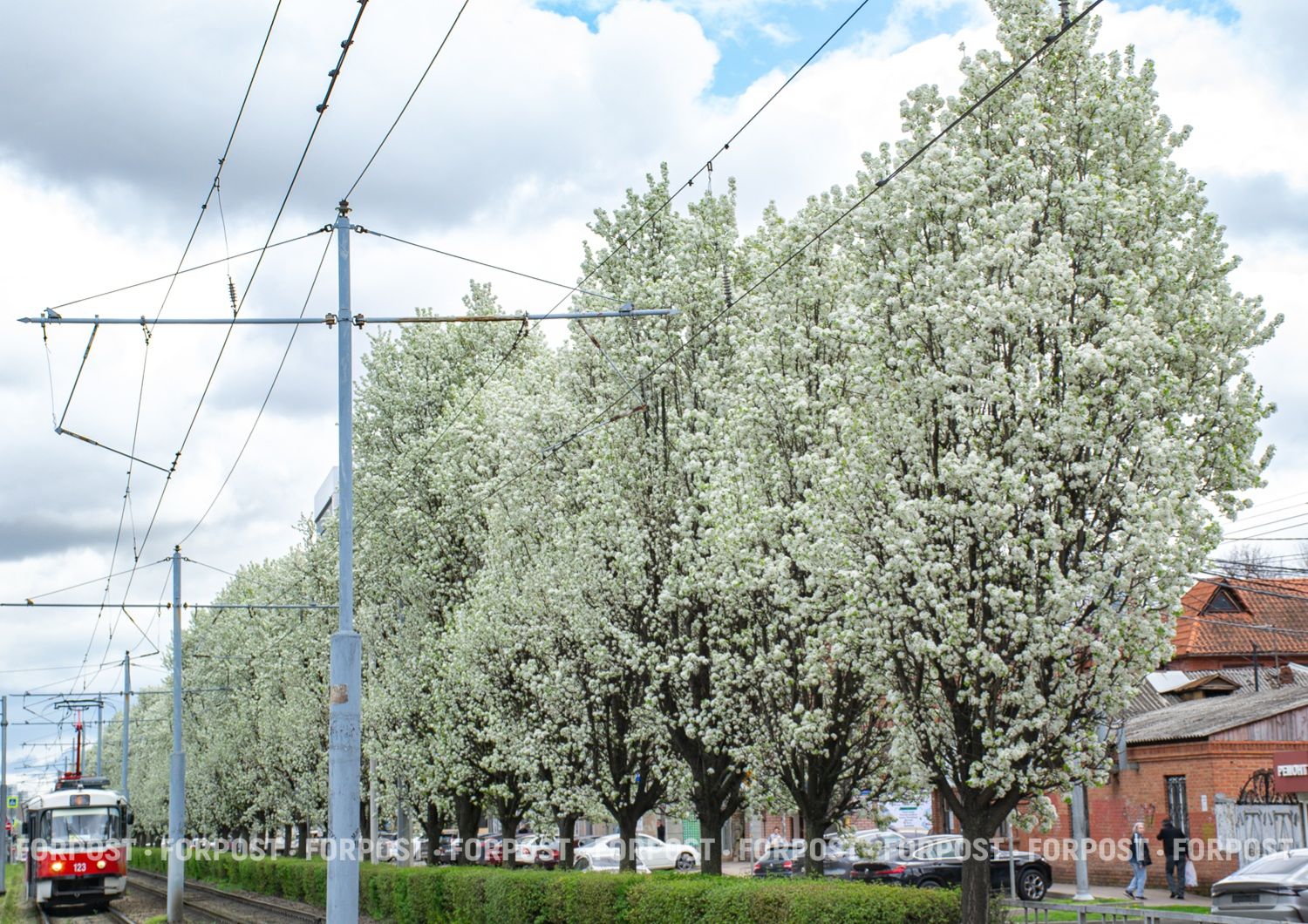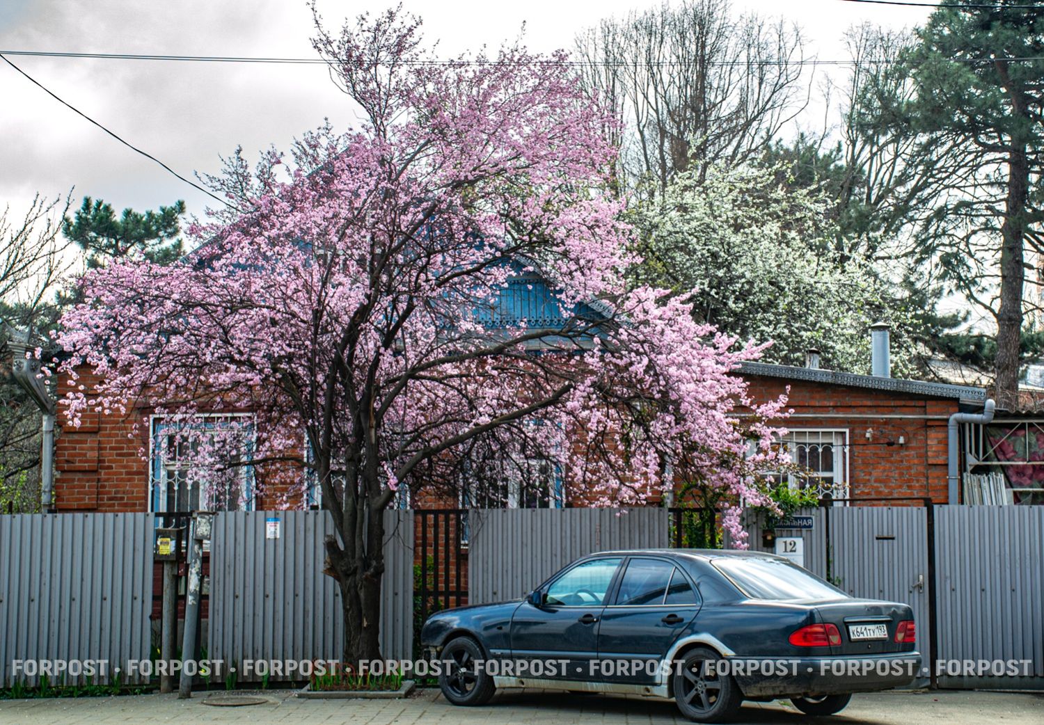 В Краснодаре сейчас не очень-то весенняя погода. Пока ещё робким попыткам тепла завоевать пространство мешают то дождик, то холодный ветер, который срывает лепестки с расцветших деревьев. Их можно сравнить с цветочными облаками.