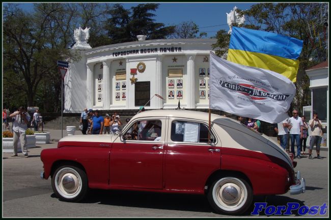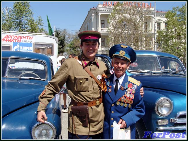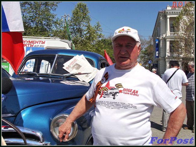Затем участники автопробега пригласили ветеранов в свои автомобили для круга почёта по кольцу города. Юрковского Павла Марьяновича повезёт по Севастополю Вячеслав Басков: