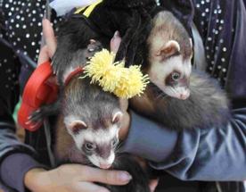16 домашних зверьков очаровали гостей праздника «День хорька» своей красотой, грацией и ловкостью. Хорьки состязались в конкурсах на самого быстрого, самого привлекательного, прожорливого и ласкового.