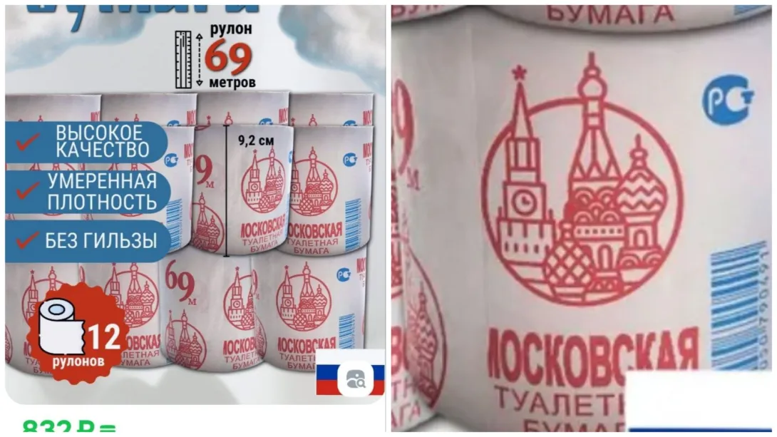 В своём Telegram-канале парламентарий опубликовал фото с популярного маркетплейса — рулоны туалетной бумаги со схематичным изображением храма Василия Блаженного и Спасской башни Кремля.