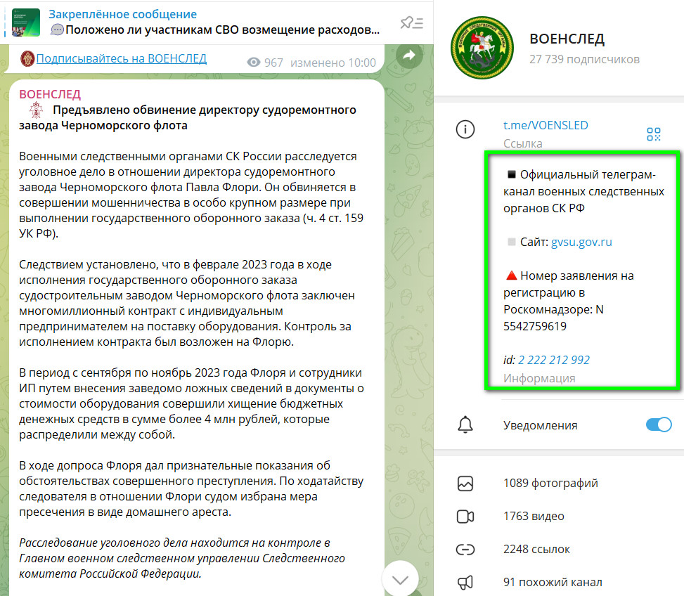 "Расследуется уголовное дело в отношении директора судоремонтного завода Черноморского флота Павла Флори. Он обвиняется в совершении мошенничества в особо крупном размере при выполнении государственного оборонного заказа (ч. 4 ст. 159 УК РФ)", – сообщается в телеграм-канале ГВСУ.