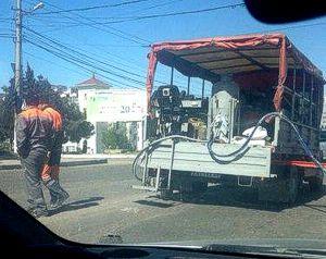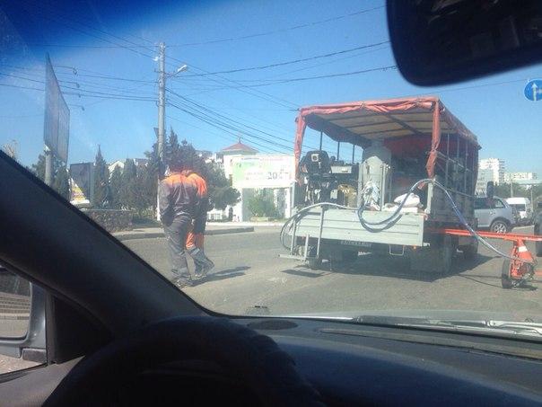 В соцсети появились фото, которые неприятно удивили севастопольцев. Рабочие, занятые нанесением разметки у Студгородка, во время обеденного перерыва оставили машину на проезжей части и отправились в пивную. Из-за авто образовался затор.