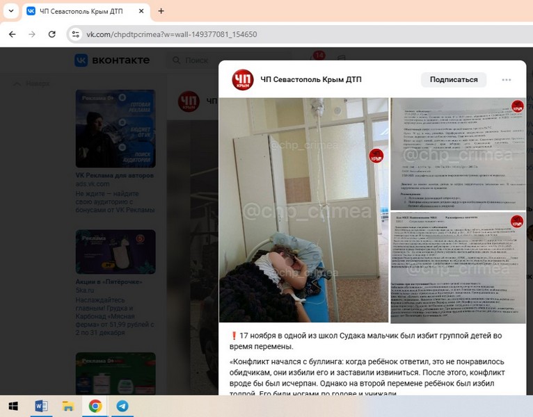 Увы, конфликты среди школьников не редкость в Крыму. Как писал ForPost, в октябре 2025 года, не выдержав нападок одноклассников, ученица шестого класса одной из школ Симферополя выпала из окна третьего этажа. К счастью, девочка отделалась лишь травмами.
