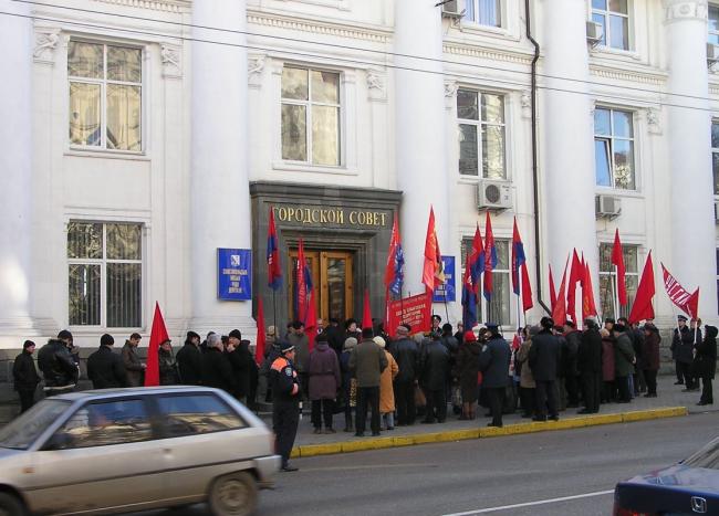 Сегодня, 20 января, в 8:00 у здания Севастопольской городской государственной администрации (СГГА) собрались около 400 горожан с требованием к председателю администрации Сергею Куницыну подать тепло в их дома и дать разъяснения по поводу пакета антикризисных мер.