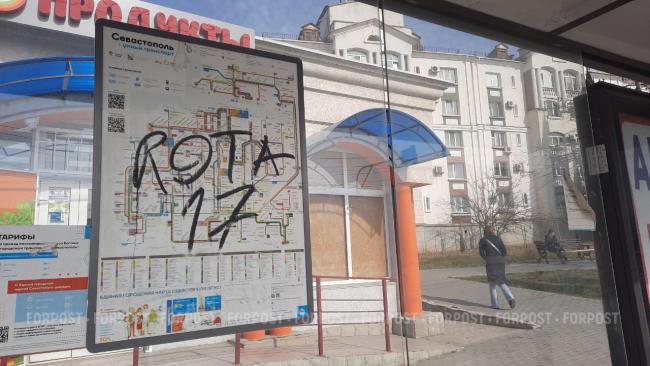 Прошло уже больше двух недель, как неустановленными (как всегда!) вандалами был в очередной раз изуродован остановочный павильон на площади Восставших (по ходу из города).