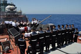 Позднее на корабле прошел праздничный концерт оркестра Черноморского флота.