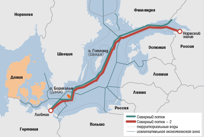 «Северный поток - 2» пройдет из России в Германию через Балтийское море.