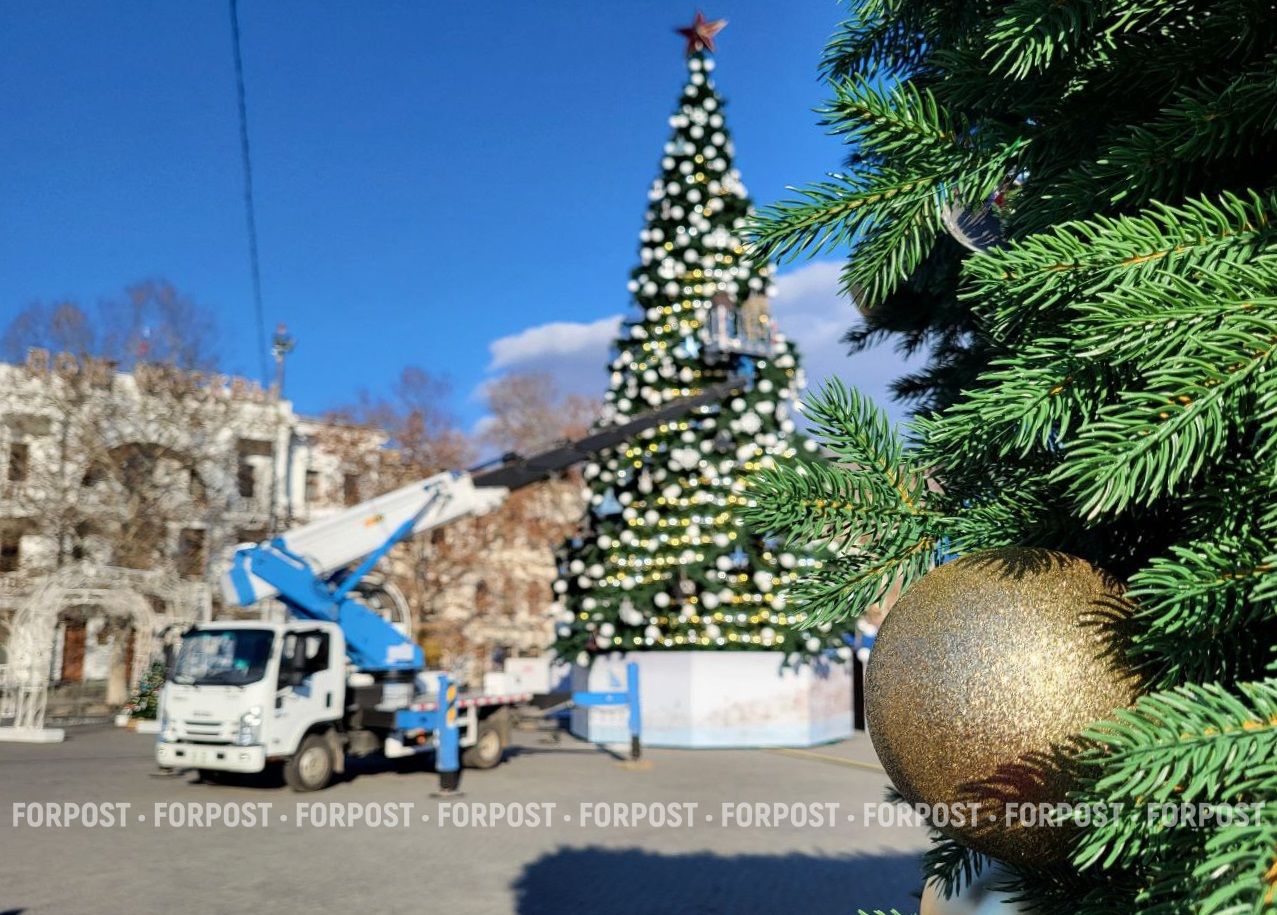 В данный момент рабочие заканчивают монтаж последних новогодних украшений. Также на площади установлены три новые фотозоны — в морском стиле, с ёлочками и со светящимися воротами.