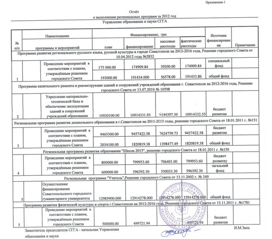 Общий размер финансирования учреждений образования в 2012 году был на 30% больше, чем в 2011. Однако деньги до распорядителей и исполнителей региональных программ не дошли, а если и дошли, то неизвестно какие работы для школ и детских садов были профинансированы из кармана севастопольцев.