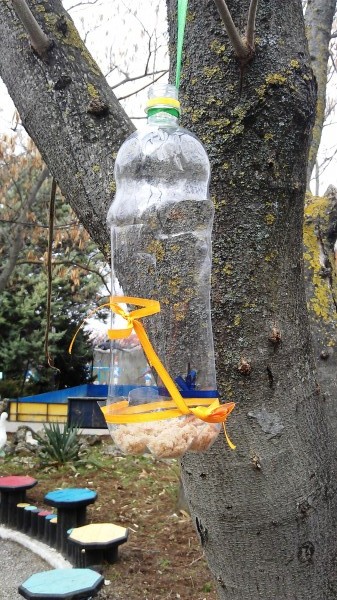 Тоже пробовали установить кормушки для птичек,потом сняли.Получается не гуманно. Залетает один,два "крутых" птиц,больше никого не пускают