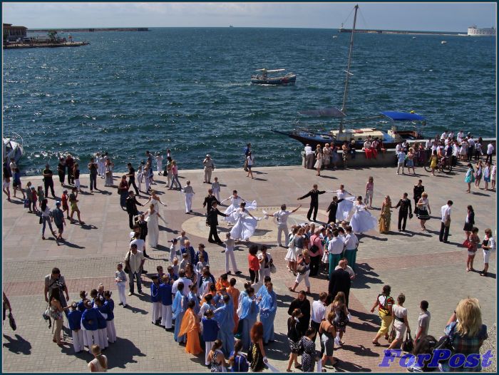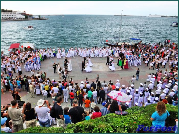 Вчера в честь 230-летия Севастополя на набережной Приморского бульвара состоялось массовое исполнение "Севастопольского вальса".