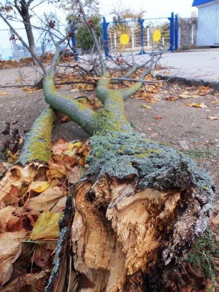 Шквалистый ветер, пронёсшийся над Севастополем на выходных, наломал ветвей с деревьев сквера Анны Ахматовой. В понедельник посетители обнаружили на центральной аллее парка несколько объёмных стволовых веток, весом приблизительно по 50-70 кг каждая, нещадно выломанных с клёнов.