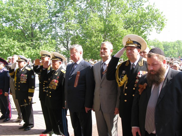 Выяснилось, что это главный раввин Севастополя Биньямин Вольф. Теперь он - главная фигура в городе, стоит в одном ряду с первыми лицами и ближе всех к прессе. Народ должен знать кто управляет городом. Яцуба и Дойников - отдыхают.