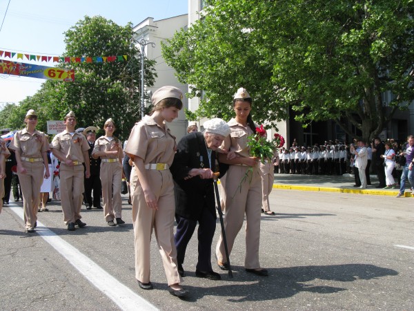 to Stixiya (Севастополь) Спасибо за фотографии! Только грустно смотреть на фото,где ведут бабушку с палочкой- видно,как ей трудно!!!Можно было и провести Ветеранов с почётом На счёт бабушки соглашусь. Её вели девочки, которым абсолютно наплевать было на то, что они ведут старенькую больную бабушку, которой очень тяжело идти. А девочки шли в полный ход, чуть ли не волоча за собой бедного ветерана.