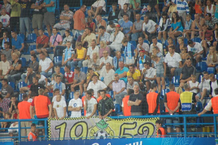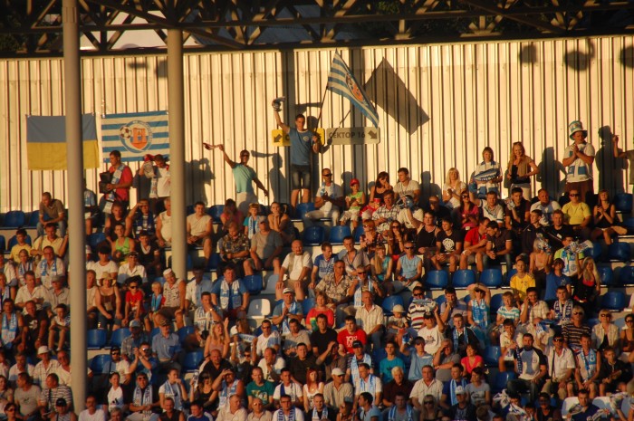Немногочисленные болельщики из Черновцов угрюмо смотрят на поле