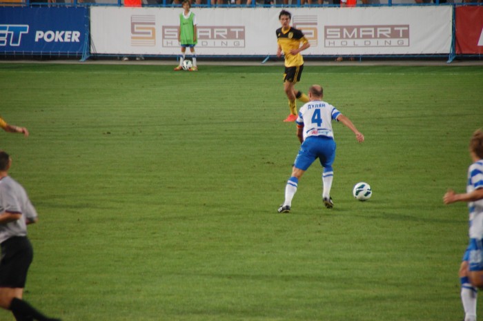 Нападение и полузащита выступила в привычном составе, поэтому и игра мало отличалась от предыдущих. Большое игровое преимущество, максимальная самоотдача, множество голевых моментов и … слабая их реализация. Никак не может «снять проклятие» Сергей Кузнецов, хотя и очень стремится забить гол.