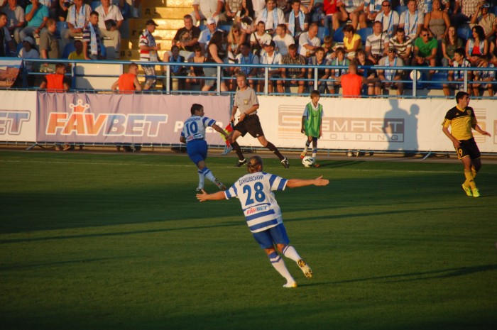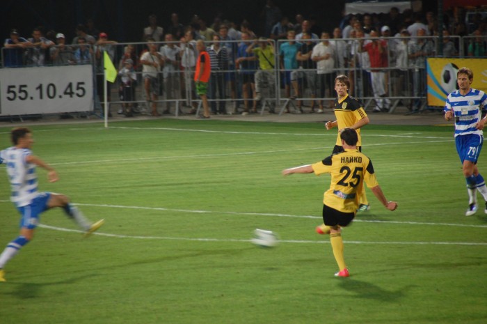 К счастью, сегодня удачным моментом воспользовался Александр Данишевский. Севастопольский спартаковец уже на 8 минуте не обратил внимания на упавшего в своей штрафной площадке буковинца, спокойно дал мячу прокатиться мимо ног защитника и хладнокровно направил мяч в сетку ворот.