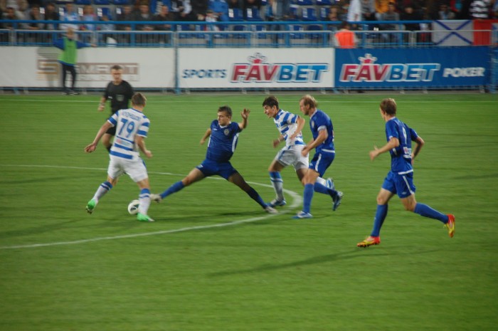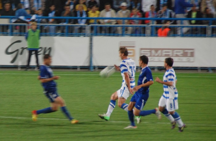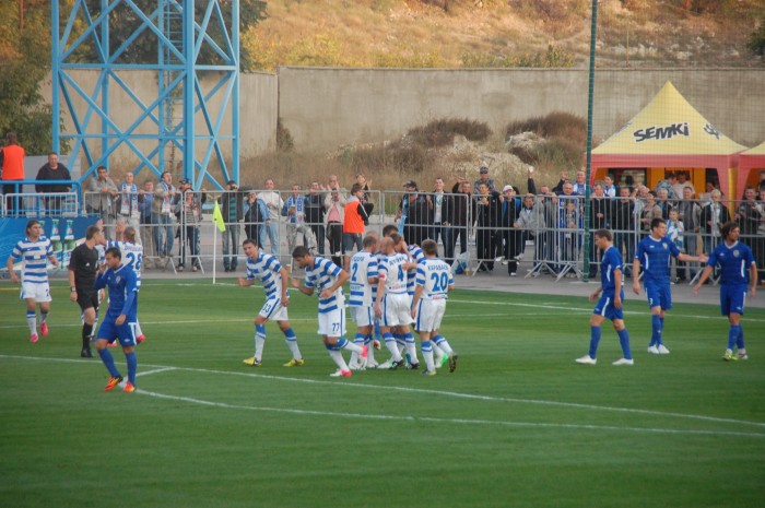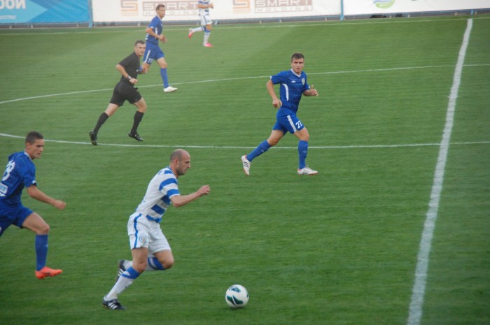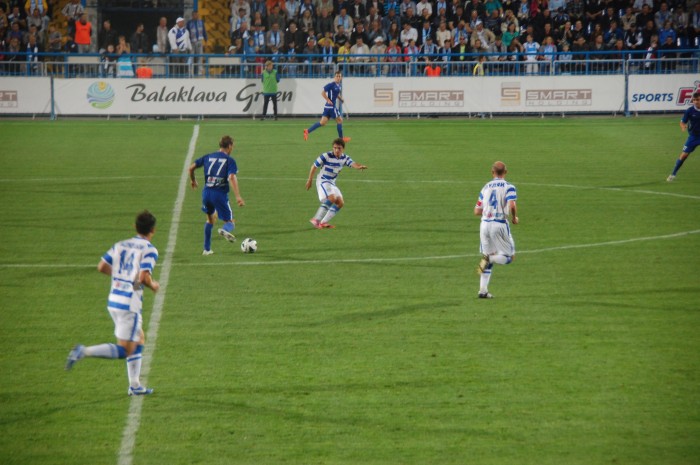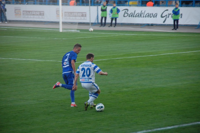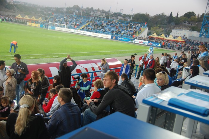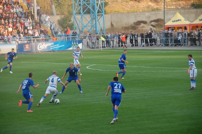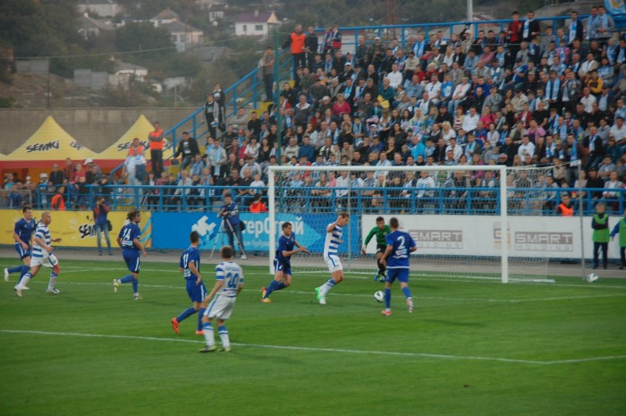 Одесситы, похоже, стушевались и просто не знали что делать, сбившись к своим воротам. За все время в первом тайме им удалось провести несколько атак, не отличающихся особой остротой. Хотя можно вспомнить два момента у наших ворот на 33 минуте, когда неуверенно сыграл севастопольский голкипер. Первый удар, к счастью, пришелся ему в грудь, а второй он и вовсе не смог зафиксировать. К нашему везению мяч шел мимо ворот. Правда, на 37 минуте Игорь Литовка реабилитировался, отбив сложный навесной мяч.