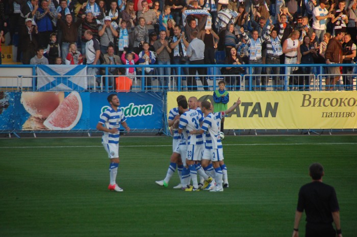 Уже на 71 минуте дублем отметился Владимир Танчик. Завладев мячом в штрафной площадке, он снова обыграл двоих и зряче пробил низом. Гол получился на заглядение. 5-0. Хороший ответ запорожскому Металлургу, который сегодня проиграл Ворскле со счетом 0-5.