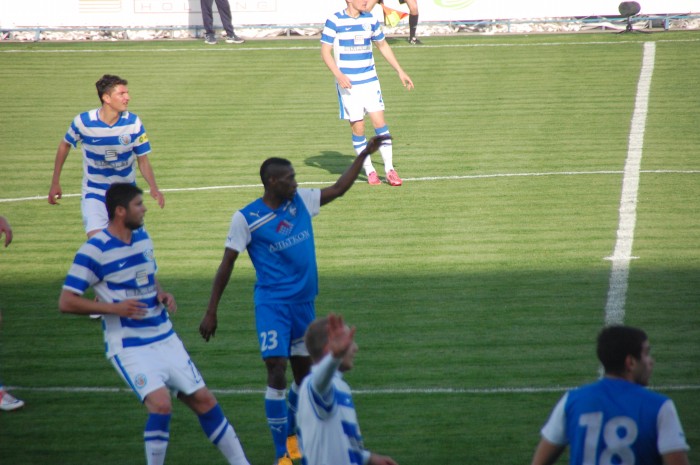 Хорошая крупная победа,идем на первом месте,все нормально! Насчет флагов,кто не в курсе,так в составе команды играет россиянин,забивший кстати вчера гол...Во всем мире существует подобная практика поддержки игроков из других стран.Хотя РОССИЯ,конечно же не "другая" и наличие триколора в Севастополе-нормальное и обычное явление.Флаги не являются запрещенным предметом.