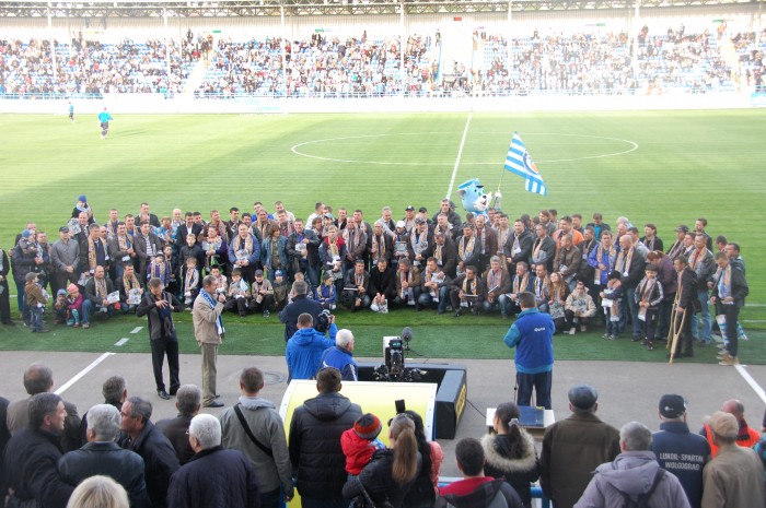 В перерыве состоялась трогательная церемония. Бывшим воспитанникам детско-юношеского футбольного клуба «Виктория» были вручены книги «Команда молодости нашей». Каждый экземпляр вручал лично автор идеи книги Евгений Репенков. В мероприятии приняли участие руководители города, которые редко пропускают матчи с участием нашей команды.