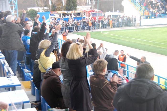 Болельщики тщательно готовились к первой домашней игре. Поединку предшествовал автопробег по городу. Выход любимой команды на поле севастопольские зрители отметили выбрасыванием лент на поле (знаменитая «Аргентина»).