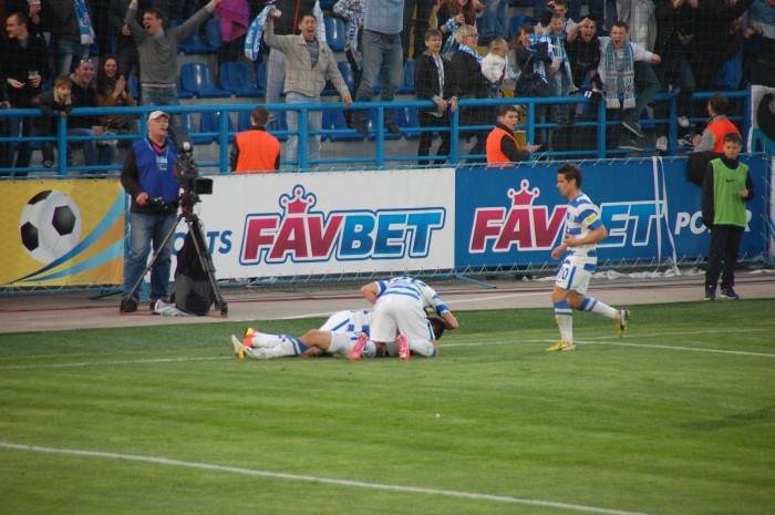 На 63 минуте Олег Кононов решил поменять нападающего. Вместо Александра Ковпака вышел Александр Жабокрицкий. И это сыграло свою роль. Хоть «Жабик» сегодня и не забил, но явно принес удачу. Уже на 65 минуте был забит первый гол на нашем стадионе в весенней части. И сделал это Александр Караваев, подключившись к атаке справа и нанеся точный удар в левый нижний угол ворот. Через минуту наши могли забить еще два раза. Команду «прорвало». Моменты чередовались один за другим. Олег Кононов «бросал в бой» свежие силы. Вошел Владимир Коваль и молодой Руслан Малиновский.