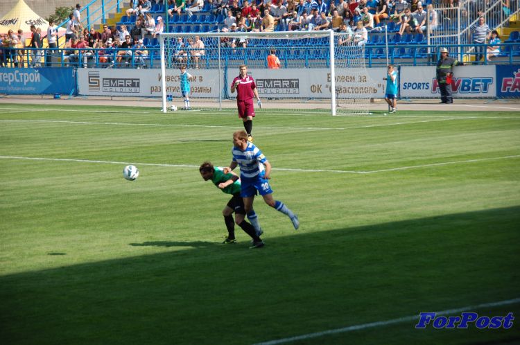 Гости оборонялись умело, но об атаке особо не помышляли. В первом тайме в нашей штрафной не было создано ни одного момента. Севастопольцы создали 5-6 опасных моментов, но не смогли завершить их точным ударом. Нужно было активизировать игру в нападении.