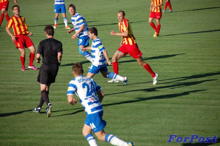 К 15-й минуте атакующий запал наших игроков немного стих. Кировоградцы стали увереннее контролировать мяч и даже несколько раз дошли до штрафной соперника. Но создать что-либо серьезное не смогли. Более менее серьезный момент возник у наших ворот лишь на 32 минуте. Нападающий гостей Кочура оказался без опеки и, получив мяч после навеса, мог поразить ворота. Но пробил выше ворот.