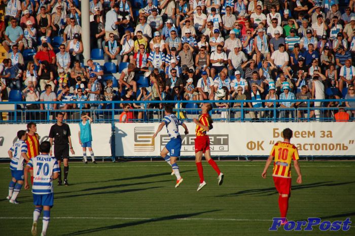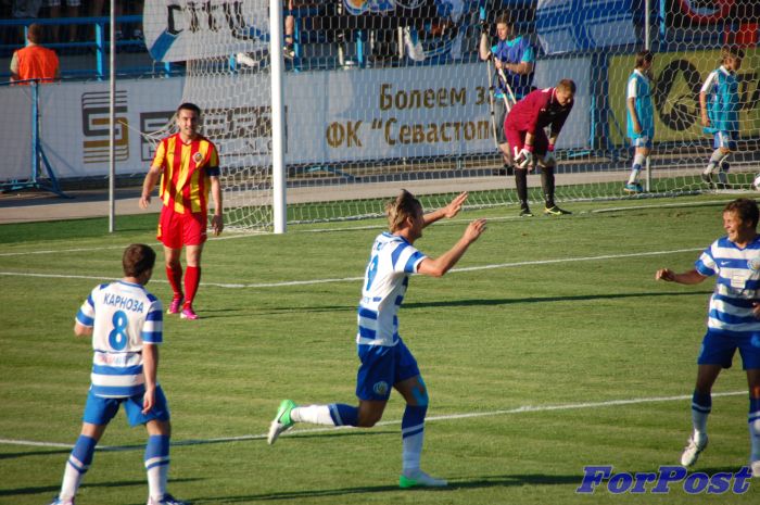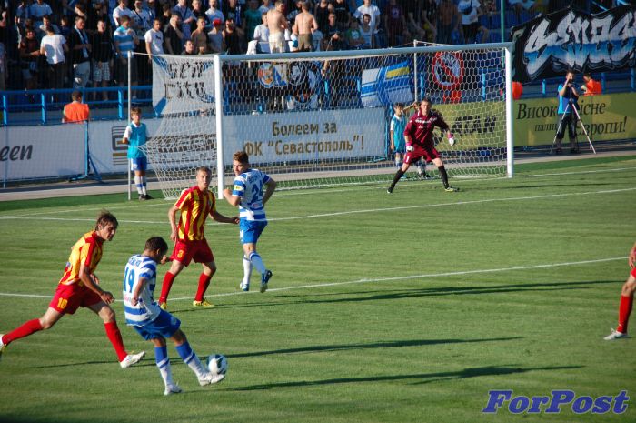 На 50-й минуте у свастопольцев получилась широкая контратака. Кожанов пробивал слева, вратарь не смог блокировать. Ковпак пробил с острого угла, но в ворота не попал.
